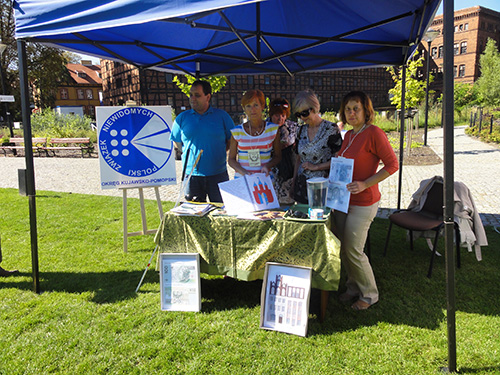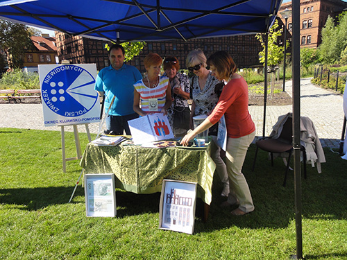 | Krystyna Skiera i Marlena Lewandowska uczestniczyły w tegorocznej odsłonie akcji „Narodowe Czytanie” zorganizowanej 7 września 2013 na Starym Rynku .Było to czytanie wybranych utworów Aleksandra Fredry dla możliwie największej liczby słuchaczy. W tym samym dniu na Wyspie Młyńskiej pracownicy działu rehabilitacji uczestniczyli w Bydgoskiem Festiwalu Organizacji Pozarządowych prezentując nasze wydawnictwa oraz tyflografikę (rysunki wypukłe).Mieszkańcy Bydgoszczy mieli możliwość poznania zasad udzielania pomocy osobie niewidomej oraz bezwzrokowego ( w goglach) nawlekania igieł, nalewania płynów, chodzenia z białą laską itp. ![]() |